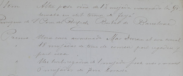 La transcripció del document del segle XVIII diu que Bernardino de Padellàs era propietari, entre desenes d'altres propietats arreu de Catalunya, de: